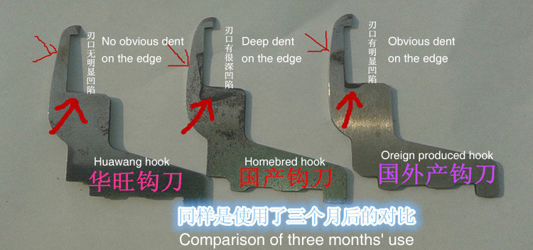 D. Ordinary hook and imported straight knife, the service life will be shorter. Due to the high hardness of imported knife and good wear resistance, ordinary hook cannot afford to import straight knife wear. Ordinary hook knife wear wear out faster. It is recommended that common hook and imported straight knife should not be used together. This can be used to shorten the life of an ordinary hook knife by about half.